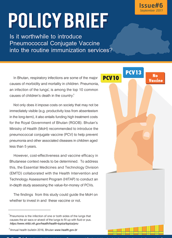 However, cost-effectiveness and vaccine efficacy in Bhutanese context needs to be determined. To address this, the Essential Medicines and Technology Division (EMTD) collaborated with the Health Intervention and Technology Assessment Program (HITAP) to conduct an in-depth study assessing the value-for-money of PCVs.