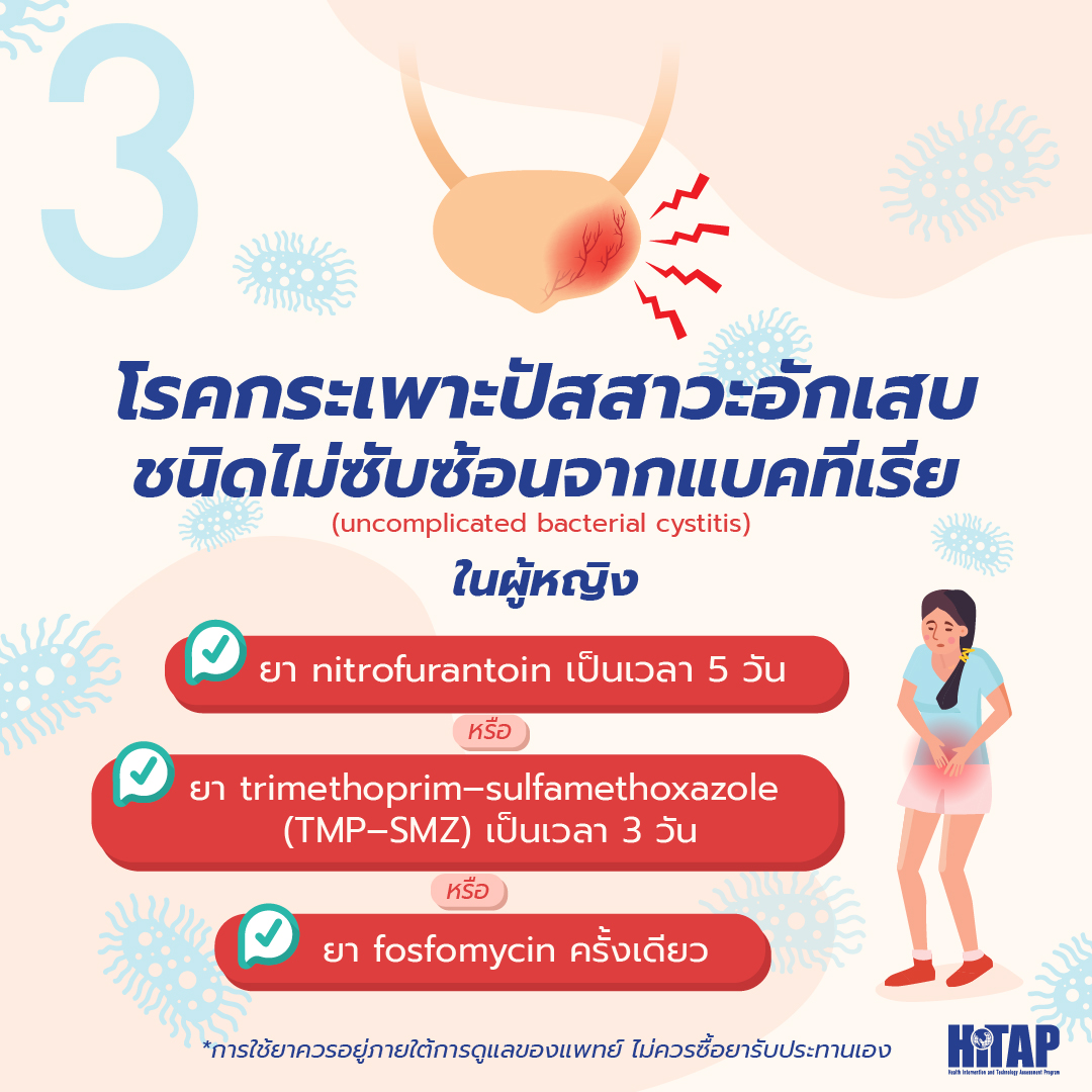 3. โรคกระเพาะปัสสาวะอักเสบชนิดไม่ซับซ้อนจากแบคทีเรีย (uncomplicated bacterial cystitis) ในผู้หญิงควรได้รับ