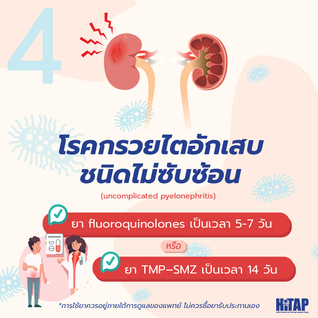 4. โรคกรวยไตอักเสบชนิดไม่ซับซ้อน (uncomplicated pyelonephritis) แนวทางปฏิบัติแนะนำว่าผู้ป่วยควรได้รับ