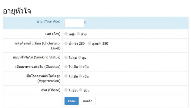 นอกจากนี้ คุณสามารถประเมินความเสี่ยงการเกิดโรคหัวใจขาดเลือดด้วยการ โปรแกรมสำเร็จรูป เพื่อทดสอบอายุหัวใจของคุณ โดยการกรอกข้อมูล เครื่องจะคำนวณอายุหัวใจให้อัตโนมัติ