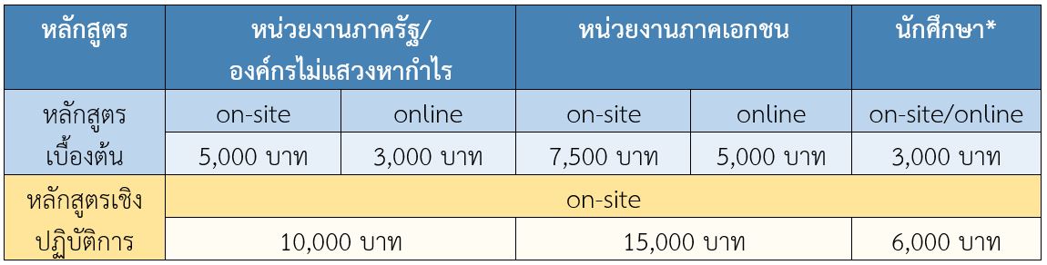 ตารางการอบรมหลักสูตรพื้นฐานสามารถดาวโหลดได้ที่นี่