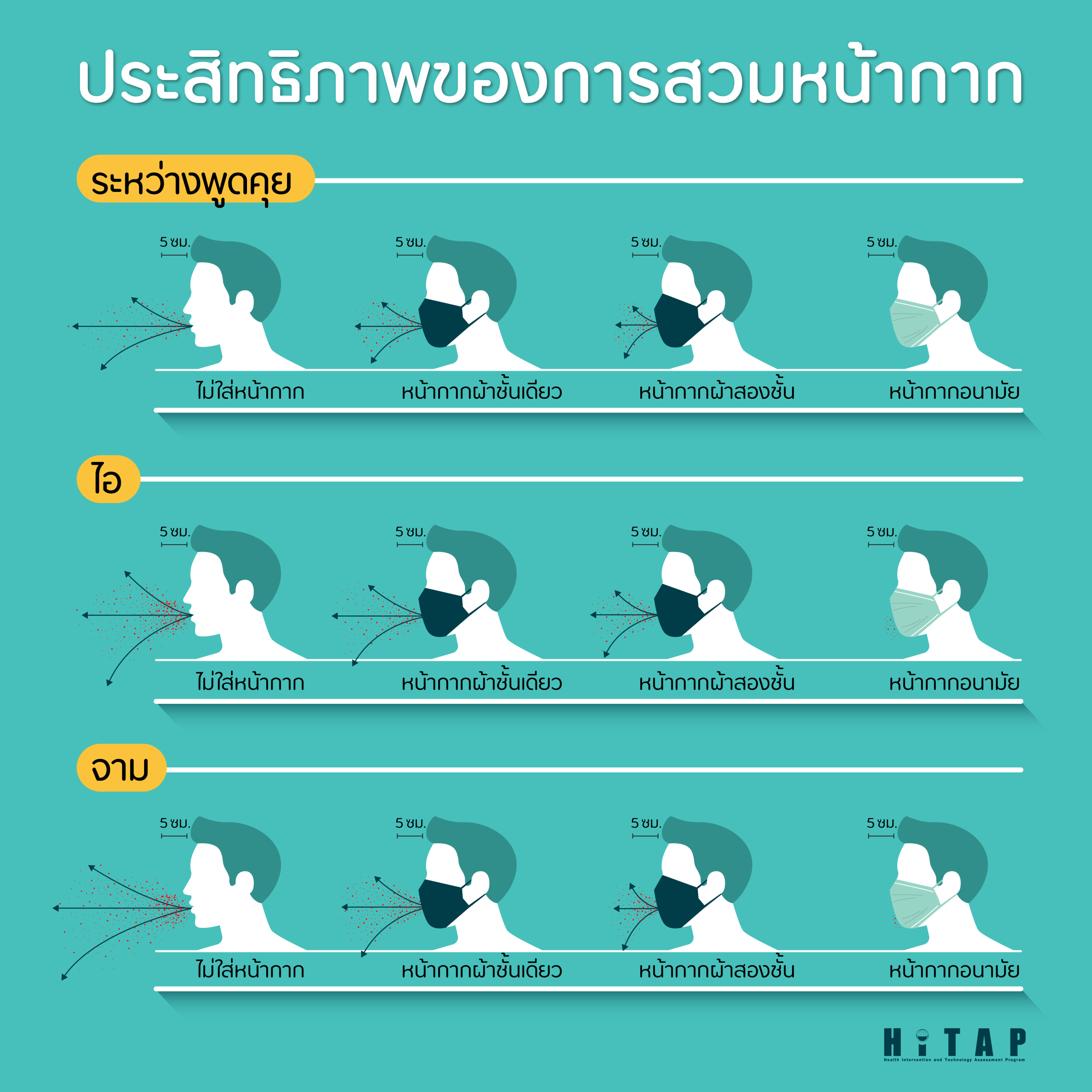 หน้ากากทำหน้าที่กรองอากาศที่เราสูดเข้าไป นั่นแปลว่าเชื้อโควิดที่กระจายอยู่ในอากาศจะถูกดักจับก่อนที่จะเข้าสู่จมูกหรือปากของเรา ทำให้ลมหายใจเข้าของเราปราศจากหรือแทบจะปราศจากเชื้อโควิดนั่นเอง ในทางกลับกัน หากเราเป็นผู้ติดเชื้อเอง การสวมหน้ากากกรองอากาศที่มีละอองน้ำลายของเราก่อนที่จะออกไปสู่โลกภายนอกก็จะช่วยดักจับเชื้อโควิดไม่ให้แพร่ไปสู่คนอื่นด้วยเช่นกัน ภาพประกอบด้านล่างอาจจะช่วยให้คุณเห็นภาพมากขึ้นครับ