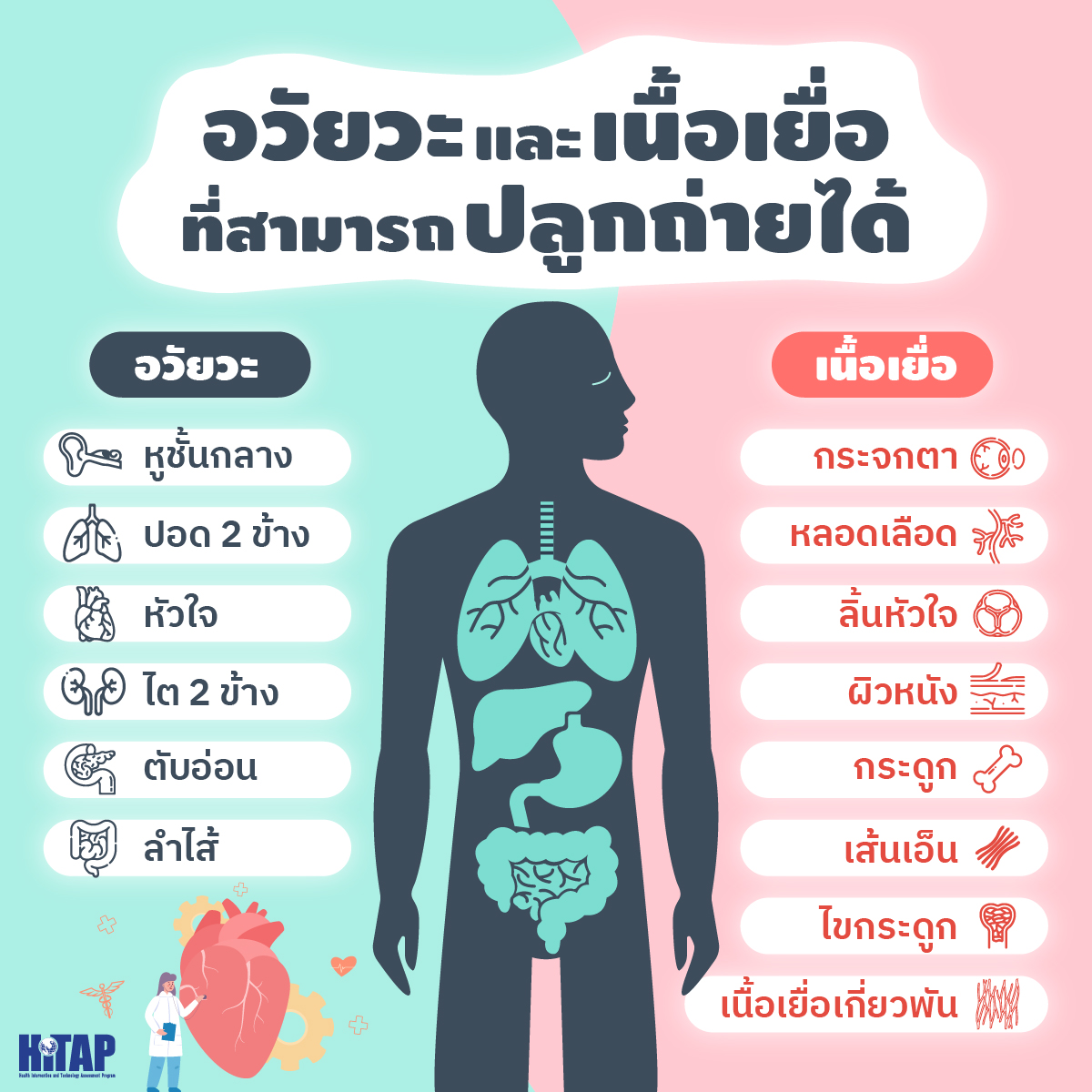 อวัยวะและเนื้อเยื่อที่สามารถนำไปปลูกถ่ายได้มีอะไรบ้าง?