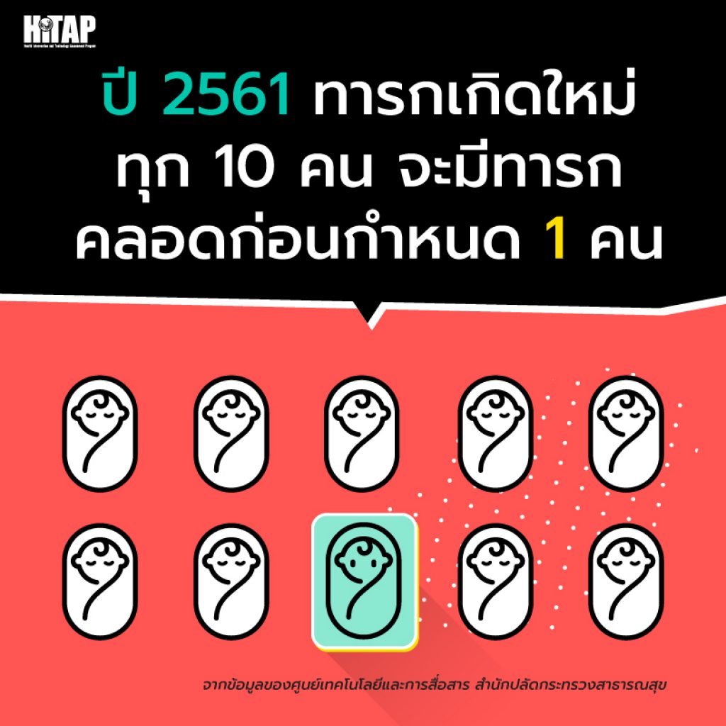 - ปี 2561 ทารกเกิดใหม่ 10 คน จะมีทารกที่คลอดก่อนกำหนด 1 คน