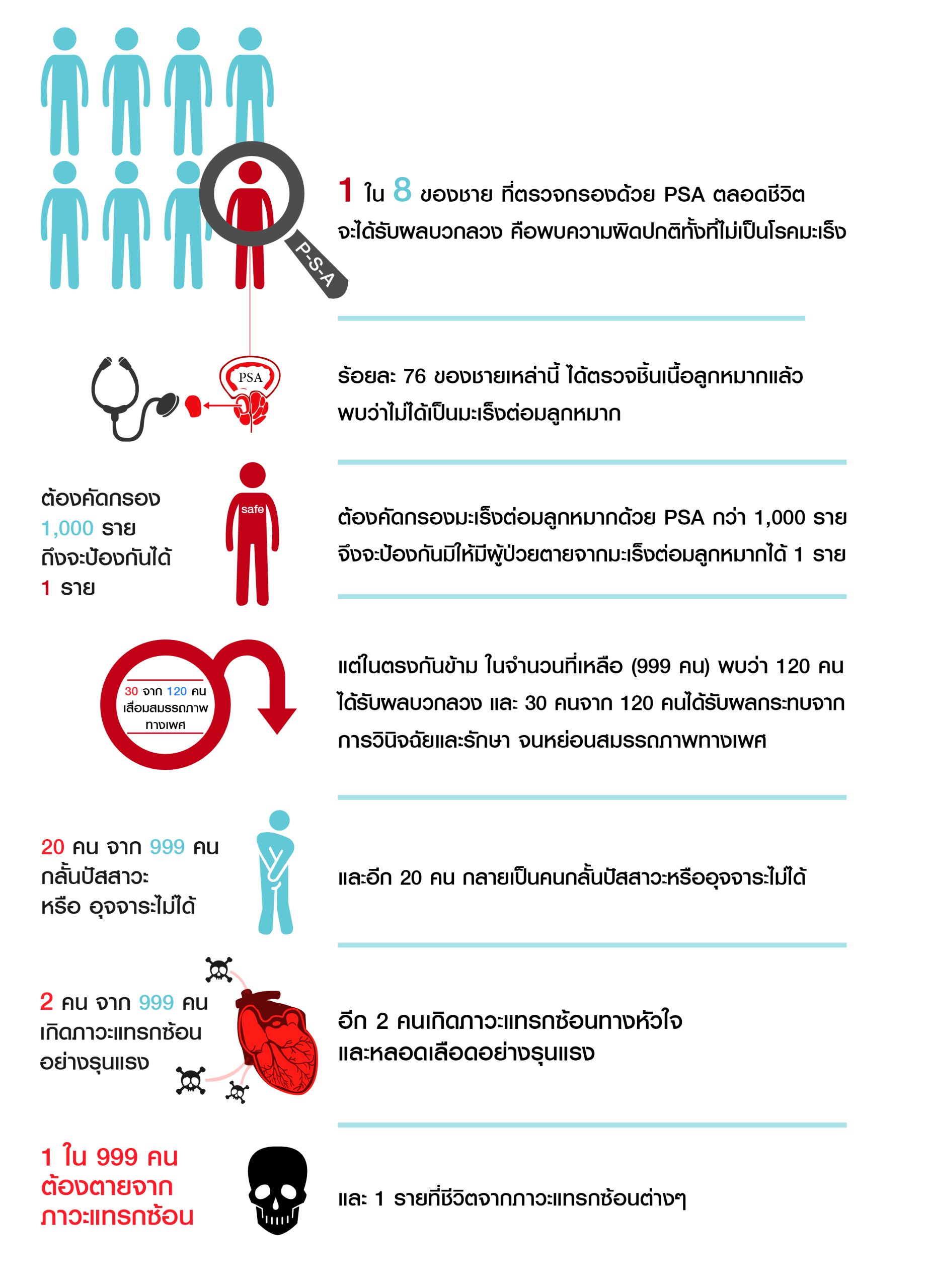 มะเร็งต่อมลูกหมากเป็นมะเร็งที่ไม่รุนแรงถึงขั้นทำให้ผู้ป่วยเสียชีวิต ถ้าไม่พบความผิดปกติ ของการขับถ่ายปัสสาวะและอายุยังไม่ 50 ก็ไม่แนะนำให้ปตรวจ ท่านสามารถดาวน์โหลดหนังสือเช็คระยะสุขภาพ ตรวจดีได้ ตรวจร้ายเสีย ได้ที่ เช็คระยะสุขภาพ: ตรวจดีได้ ตรวจร้ายเสีย  และเข้าเช็คสุขภาพของท่านได้ที่ www.mycheckup.in.th