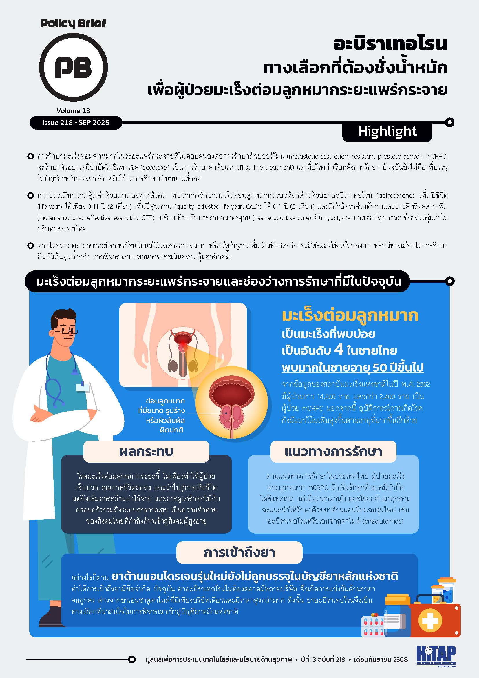 อะบิราเทอโรน ทางเลือกที่ต้องชั่งน้ำหนัก เพื่อผู้ป่วยมะเร็งต่อมลูกหมากระยะแพร่กระจาย