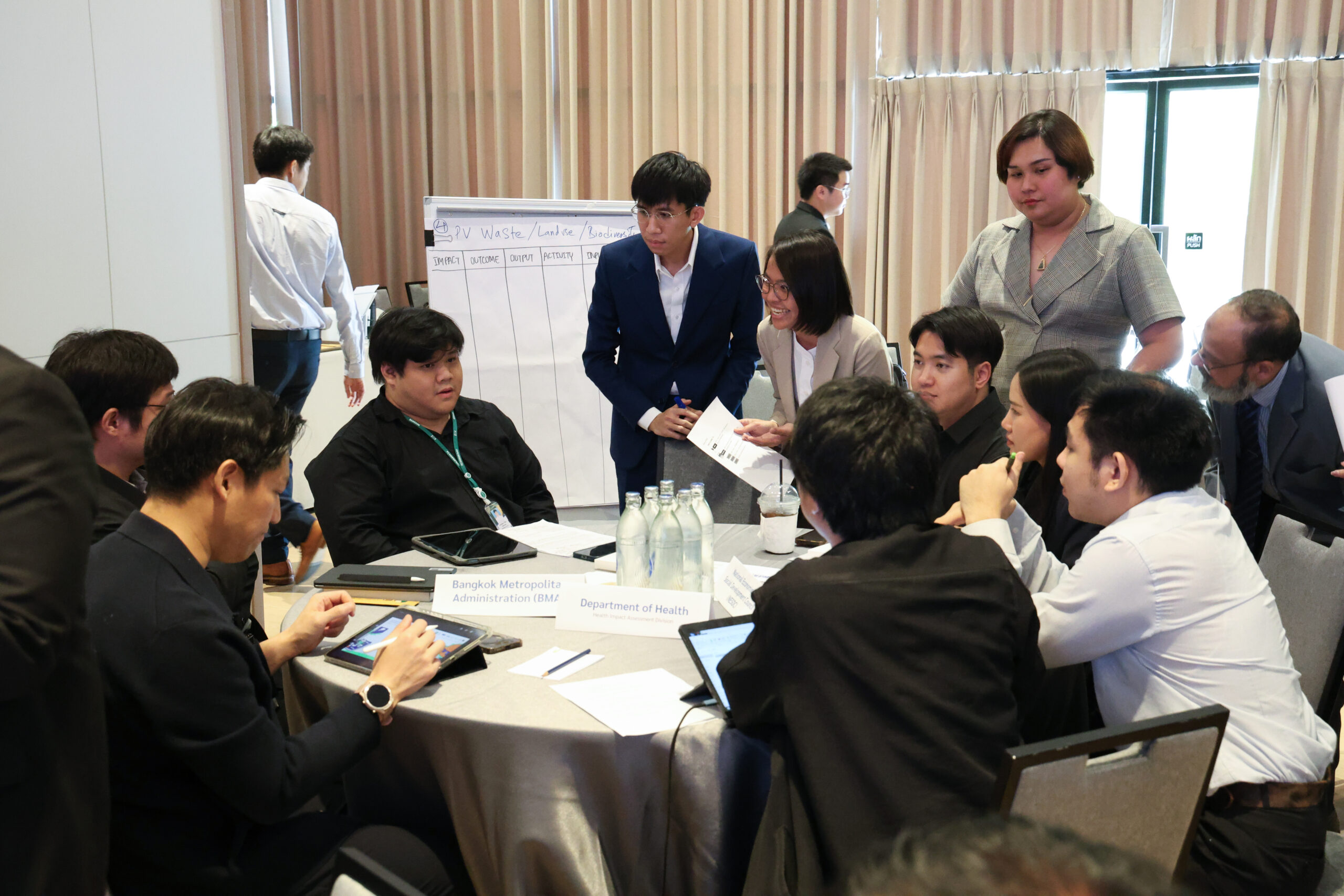 คุณรัฐ เรืองโชติวิทย์ ผู้อำนวยการกลุ่มวิจัยด้านการลดก๊าซเรือนกระจก กรมการเปลี่ยนแปลงสภาพภูมิอากาศและสิ่งแวดล้อม (สส.) กระทรวงทรัพยากรธรรมชาติและสิ่งแวดล้อม ได้เน้นย้ำความสำคัญของกรอบ NDC 3.0 ในการเชื่อมโยงแผนพัฒนาเศรษฐกิจ ยุทธศาสตร์ชาติ และการปฏิบัติงานในระดับจังหวัดเข้าด้วยกัน และการจัดทำร่าง พ.ร.บ. การเปลี่ยนแปลงสภาพภูมิอากาศ (Climate Change Act) เพื่อขับเคลื่อนเป้าหมาย net zero ให้เร็วขึ้นจากพ.ศ. 2608 เป็น พ.ศ.2593 และ รศ.ดร. สุธา ขาวเธียร ผู้อำนวยการศูนย์ความเป็นเลิศด้านการจัดการสารและของเสียอันตราย (คสอ.) จุฬาลงกรณ์มหาวิทยาลัย ให้ข้อมูลด้านการจัดการขยะอิเล็กทรอนิกส์ และความร่วมมือกับ สปสช. ในการพัฒนาแนวทางการนำพลังงานแสงอาทิตย์มาใช้อย่างเหมาะสม