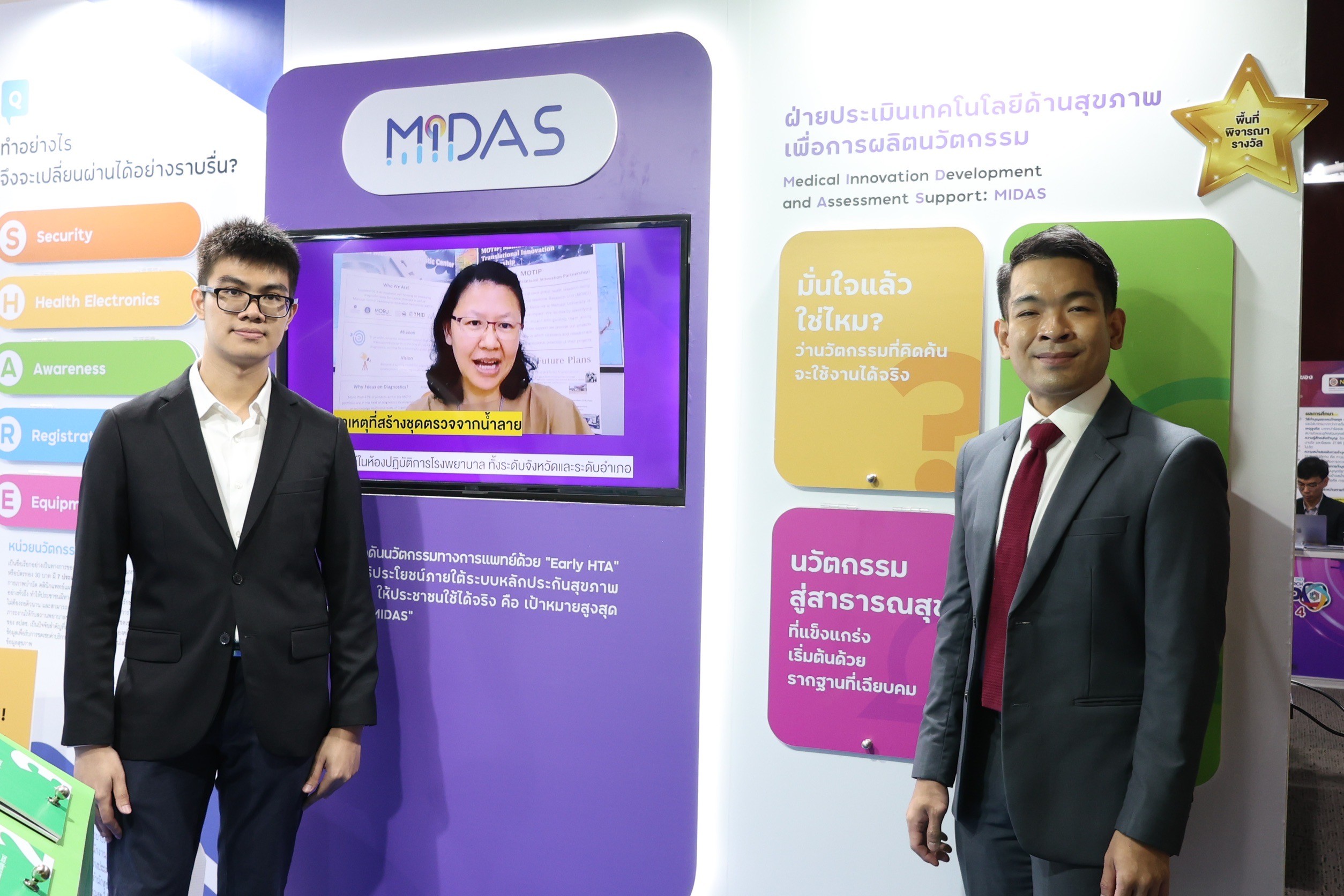 อีกหนึ่งหน่วยงานสำคัญและเป็นหน่วยงานเดียวในประเทศไทยที่มีจุดมุ่งหมายในการพัฒนานวัตกรรมและเทคโนโลยีทางการแพทย์ในระยะพัฒนาโดยการนำ Early HTA มาใช้ประเมิน “ฝ่ายประเมินเทคโนโลยีด้านสุขภาพเพื่อการผลิตนวัตกรรม (Medical Innovation Development and Assessment Support: MIDAS)” โดยมี ดร.ธีรวัฒน์ วิวัฒน์พาณิชย์ ผู้จัดการแผนงานวิจัยและนักวิจัย นำเสนองานวิจัยที่พัฒนากับคณะเวชศาสตร์เขตร้อน มหาวิทยาลัยมหิดล ในโครงการวิจัยเรื่องชุดตรวจวัณโรคปอดด้วยตัวอย่างน้ำลาย เพื่อให้นอกจากชุดตรวจที่มีคุณภาพ มีความแม่นยำและความเที่ยงต่อการแปรผล ช่วยยกระดับสุขภาพให้กับผู้ป่วยและประชาชนได้จริงแล้ว แต่แม้นเป็นนวัตกรรมที่ดีเลิศ ก็อาจไปไม่ถึงมือประชาชนหากประเมินแล้วพบว่าไม่มีความคุ้มค่าฯ การนำ Early HTA เข้ามาสู่ขั้นตอนแรกของกระบวนการพัฒนาจึงสำคัญต่อนวัตกรรมทางการแพทย์เป็นอย่างมาก